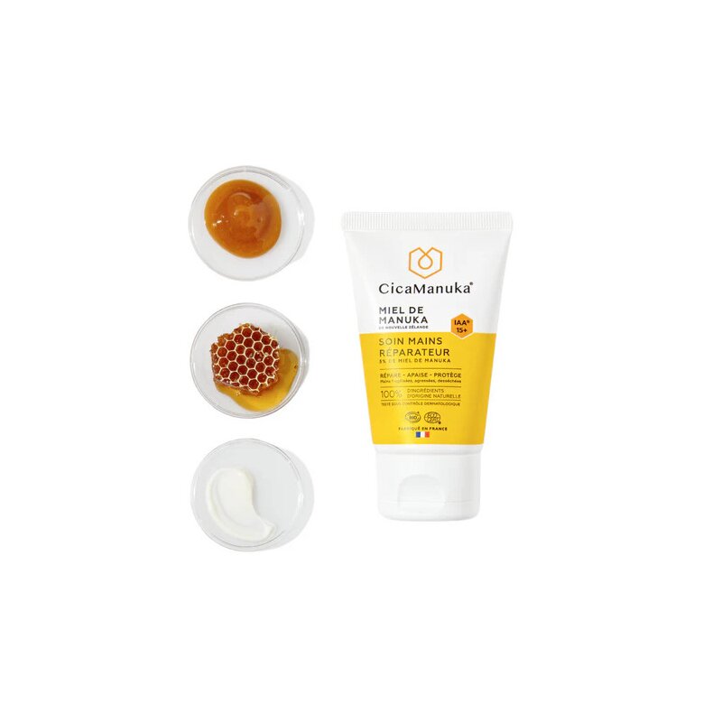 Compusa 100% din ingrediente de origine naturala, inclusiv 40% IAA 10+ miere de Manuka, crema reparatoare promoveaza repararea pielii si protejeaza pielea de deshidratare. Ofera o usurare de durata a disconfortului, protejeaza si calmeaza pielea la aplicare, pentru o senzatie de confort imediat. Mierea de Manuka cu proprietati protectoare si reparatoare promoveaza repararea epidermei, catifeleaza pielea si o hraneste sustenabil.