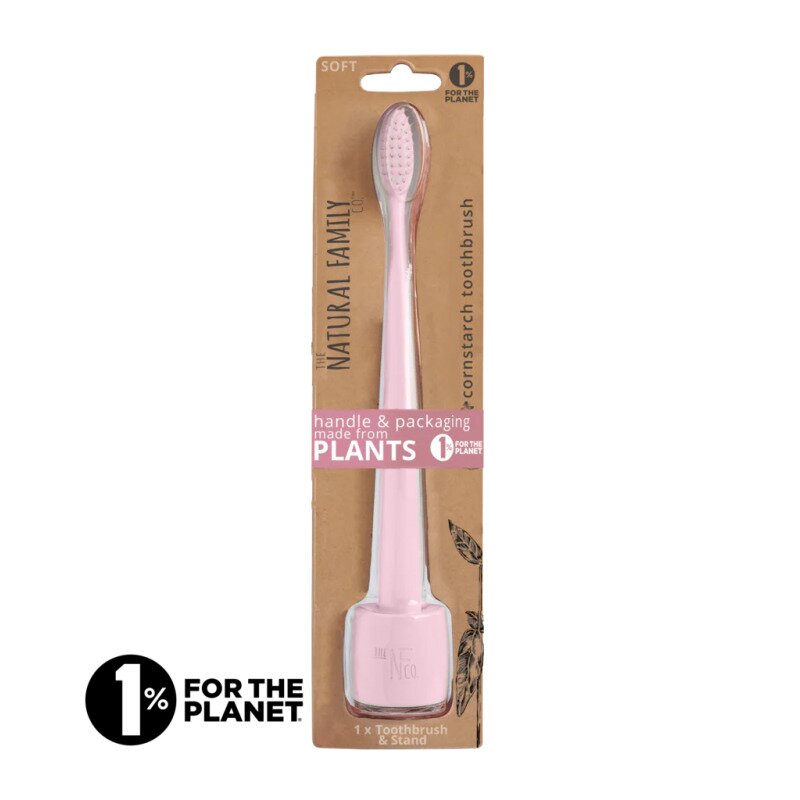 Periuta de dinti bio Nfco este complet biodegradabila, inclusiv ambalajul. Manerul este realizat din amidon de porumb nemodificat genetic, iar perii din nylon nu contin BPA.