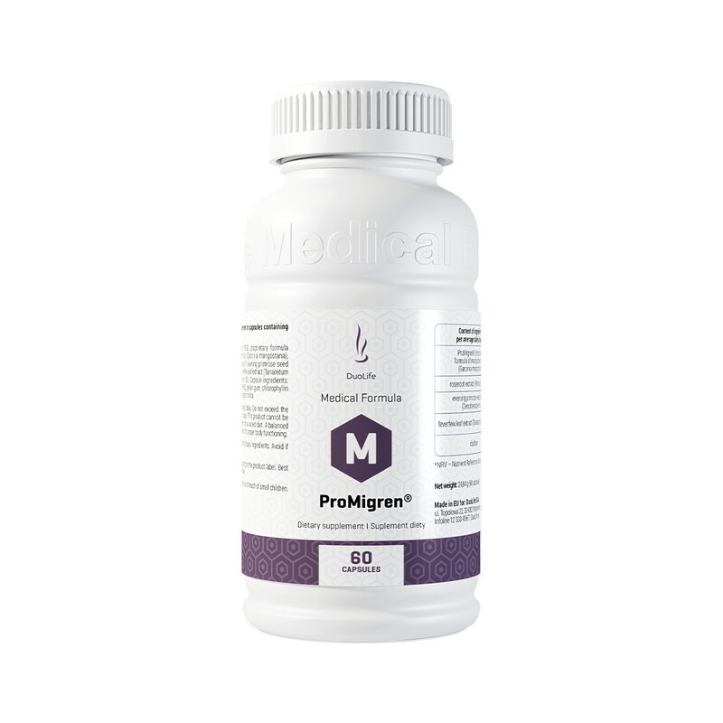 ProMigren® – este un produs compus din ingrediente atent selectionate de origine naturala, care creeaza o compozitie unica, in conformitate cu principiile sinergismului. Suplimentul alimentar ProMigren® este o combinatie a formulei brevetate ProMigren® din fructe de mangostan, vitamina B2, extract de radacina de rhodiola rosea, seminte de primula si alte ingrediente valoroase din plante.