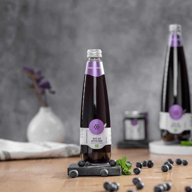 Suc BIO Natural din Afine, fara zahar, 350ml, MerryBerry