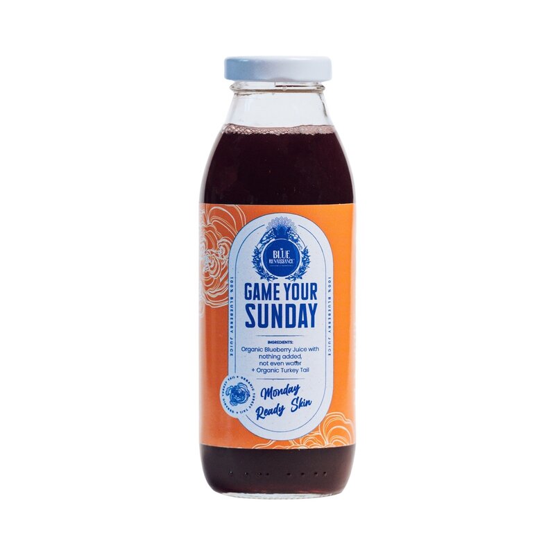 La fel ca in fiecare duminica, trebuie sa iti indrepti atentia catre ziua de luni, si sa te pregatesti sa dai tot ce ai mai bun. O saptamana nebuna, plina de munca asidua si petreceri intense se poate reflecta pe pielea ta. Dar, vine cea mai buna zi a saptamanii, asa ca nu ai niciun motiv sa stai ascuns intr-un colt si sa te temi de ce urmeaza. In acelasi timp, te gandesti sa te ascunzi, dar si la un brunch sau la o cina usoara de duminica seara, cu cateva bauturi! Ce-ar fi daca te-am ajuta sa iei o decizie? Incearca acest amestec savuros de antioxidanti din Afine si Ghimbir. Ghimbirul ofera numeroase beneficii pentru piele si functioneaza ca un rejuvenant care ajuta la diminuarea semnelor de imbatranire, eliminarea toxinelor, echilibrarea nuantelor pielii, stimularea cresterii parului si imbunatatirea circulatiei sangvine. Esti gata sa imbratisezi albastrul?