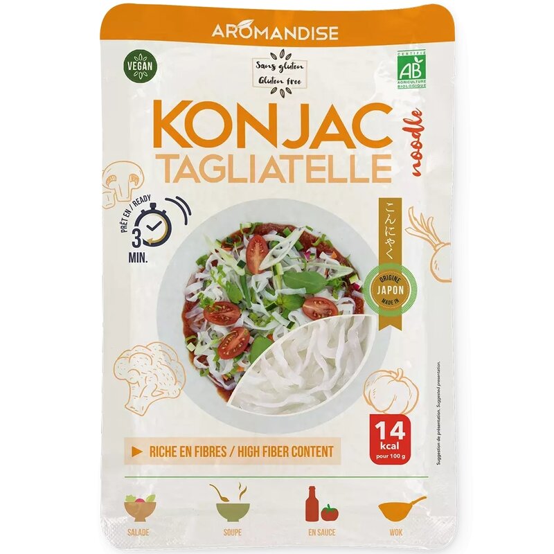 Konjac este combinat cu orez pentru a face tagliatelele mai gustoase și textura lor mai frageda. Konjac este compus în principal din Glucomannan, care contribuie la pierderea în greutate și la menținerea nivelului normal de colesterol din sânge.
