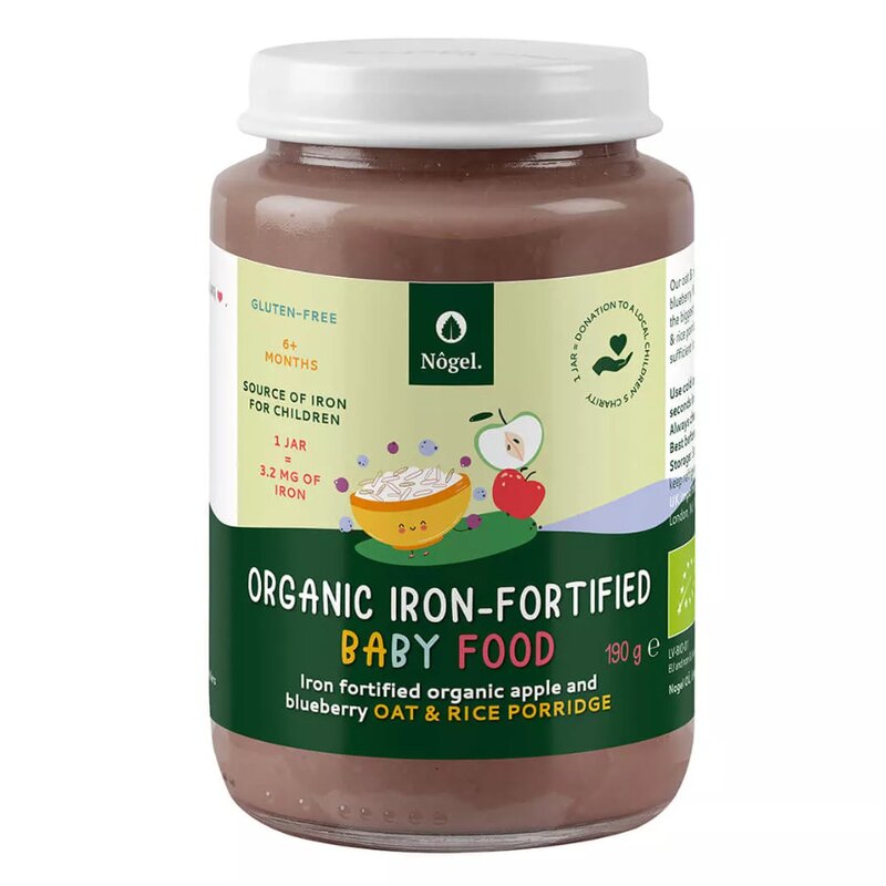 Alimentele Nôgel pentru bebelusi sunt imbogatite cu fier pentru a asigura ca cei mici primesc suficient fier in fiecare zi. In functie de gust, o cutie de terci contine intre 3,2 si 4,3 mg de fier (53-72% din necesarul zilnic de fier pentru sugari si copii mici). Piureurile de legume furnizeaza 1,1-1,4 mg de fier (18-23% din necesarul zilnic).